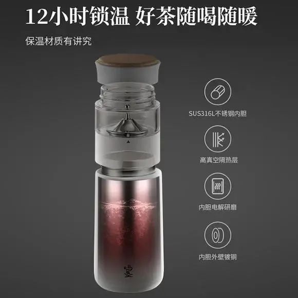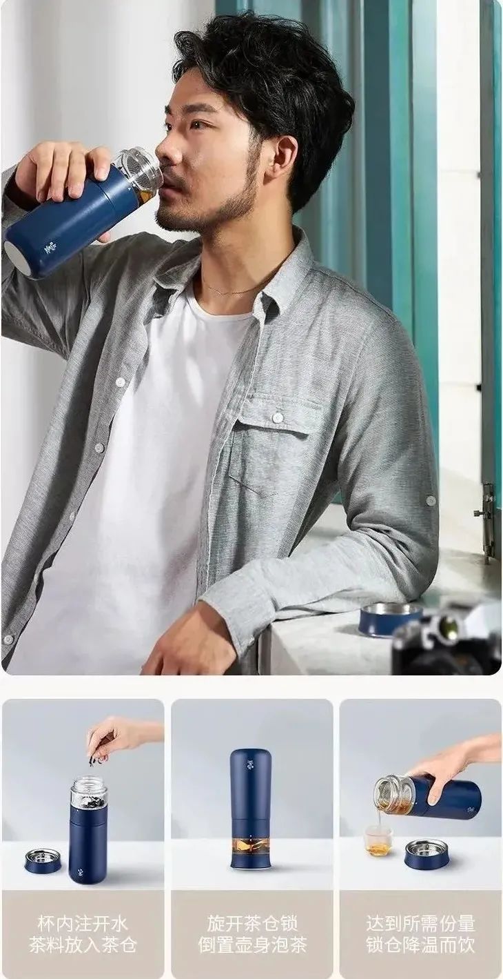 顶盖茶杯+双层滤网+茶仓+保温杯,一杯整合为“一套功夫茶具”!真正实现了一杯保温又能泡茶的功能!