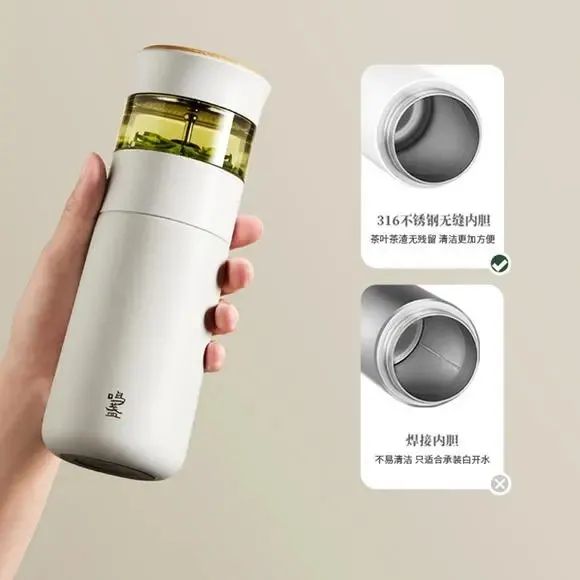 入口的东西,材质很重要!316不锈钢无缝内胆,不惧茶渣残留,清洁起来更加方便。