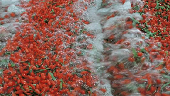 采摘后的鲜枸杞还需要经过三层净水处理: