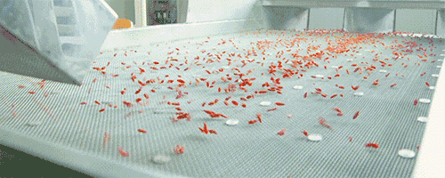烘干后的枸杞还需要进行双重色选,利用光电探测技术将有瑕疵的枸杞自动分拣出来,只保留品相完好、果肉饱满的好果。