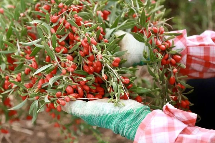 新鲜的枸杞需要依靠人工采摘,经过多轮精挑细选,只留下最优质的鲜果。
