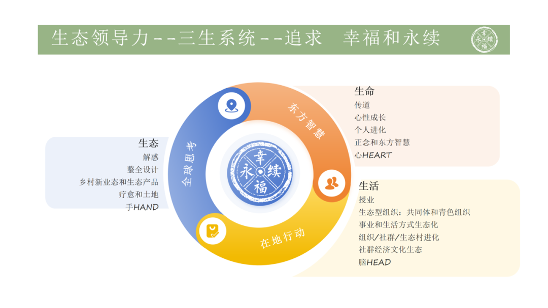 通过过去九年的国际生态村实践,以及书院六届全日制新青年班的探索,我们打造了一个较为完善的年轻人返乡创业、学习和生活的社群、内容创造和成长平台,以“生态、生活、生命”三生系统赋能渴望找到生命方向的年轻人,释放青年的创造力,重启新的人生。