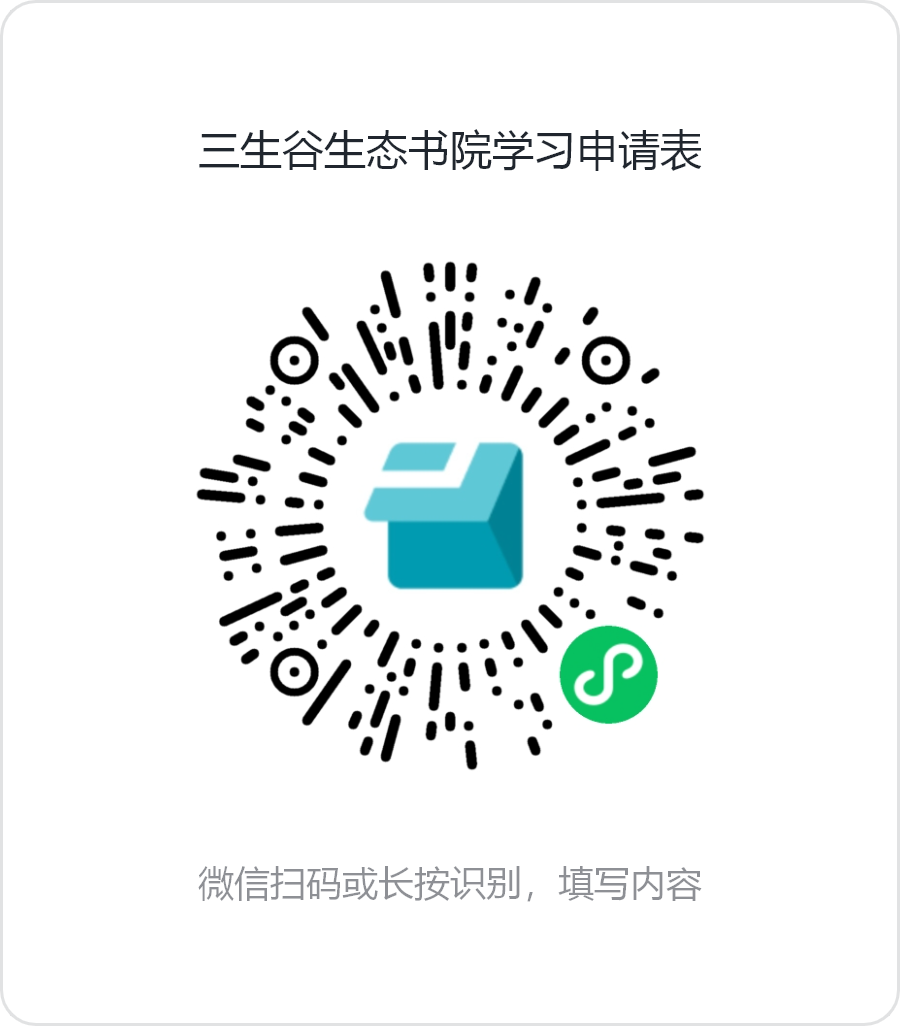 喜欢并适合以上内容,想要深入了解三生谷,融入共同体社群,生发更多交流和对话,但时间有限不能连续投入的伙伴,可以在一年中分四次,每次一周时间来三生谷学习和体验生活。