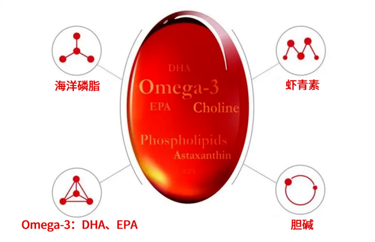 除了海洋磷脂,它还有脑黄金Omega-3,清道夫EPA,还有虾青素,抗氧化能力是维C的6000倍,以及被称为“助燃剂”的胆碱。