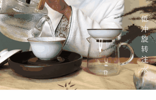 以沸水润茶。烧水壶中的水沸后,低冲旋转注水,即入即出,润茶2次。