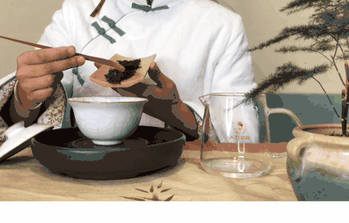 以电子秤称取8克《和畅》干茶(经南茗佳人的多位茶艺师数百次实验,用南茗佳人175毫升盖碗冲泡茶品时,取茶8克是比较适宜的投茶量。当然茶友可根据自家盖碗的大小,以及个人的口味浓淡,适当增减投茶量)。