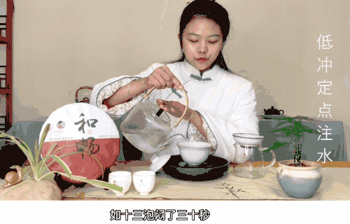 13泡起:沸水冲泡,低冲定点注水,闷泡时间逐泡递增10秒。如13泡闷20秒出汤,那14泡闷30秒出汤,以此类推。