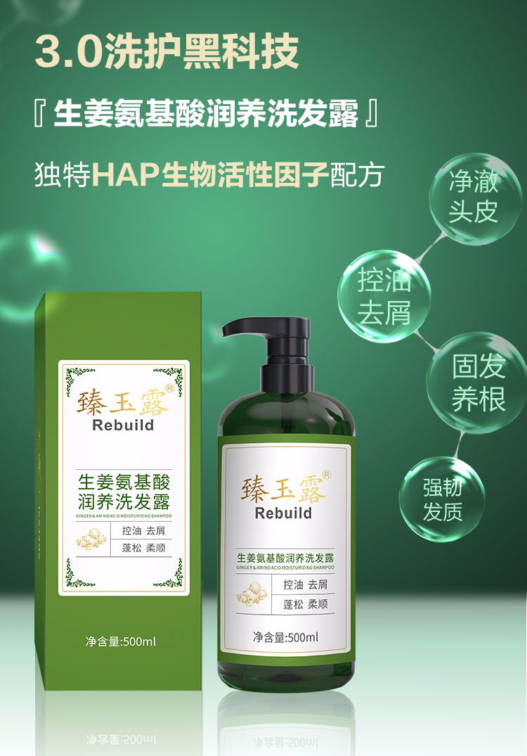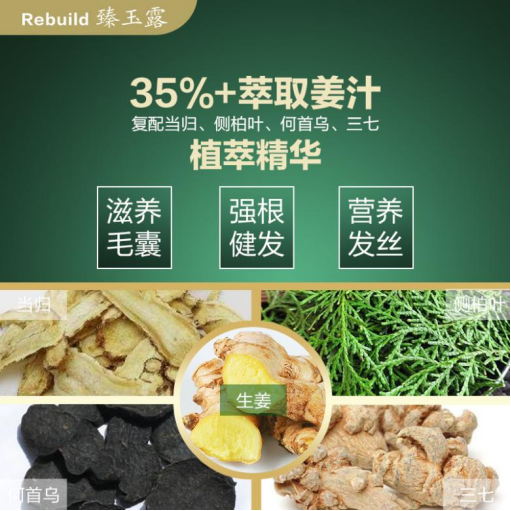 Rebuild臻玉露生姜氨基酸润养洗发露,是一款将高科技成分与自然植萃有机融合、能够真正清洁净化头皮的产品!