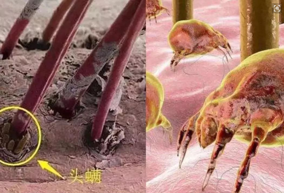 它们在你的头皮上繁衍生息,破坏你的头皮环境,导致螨虫痘、毛囊炎疯狂滋生。