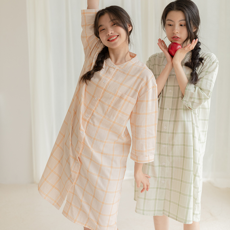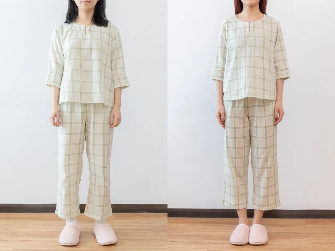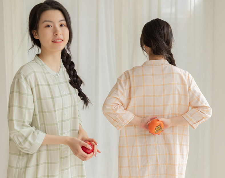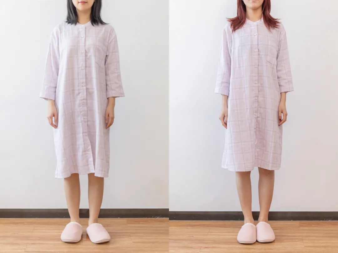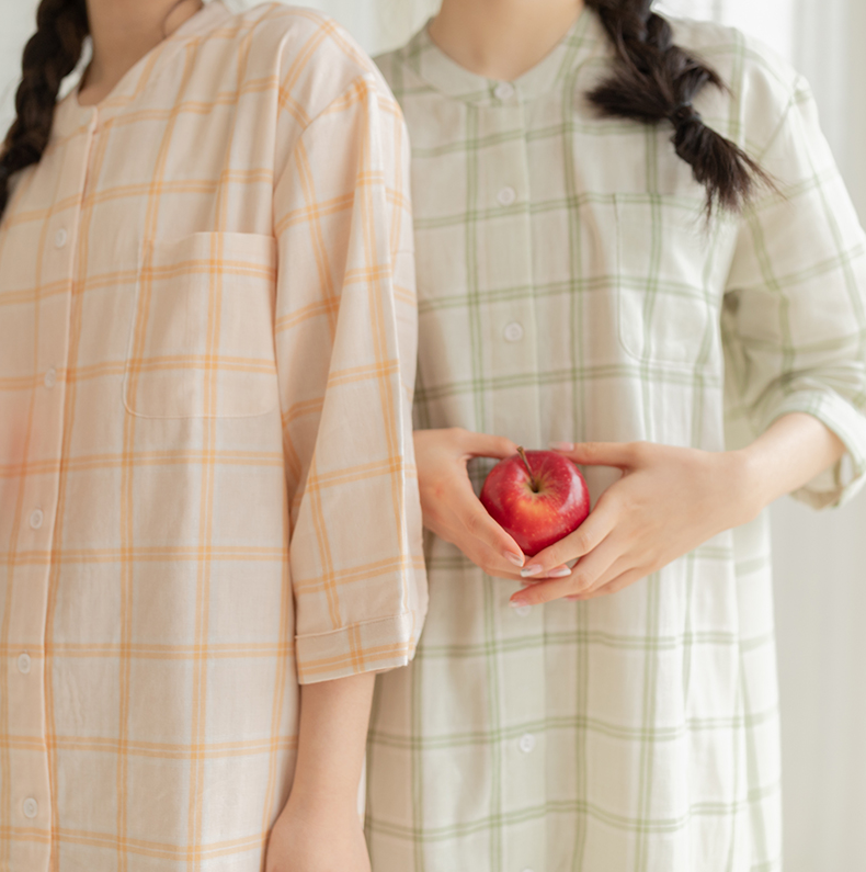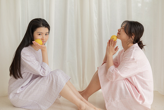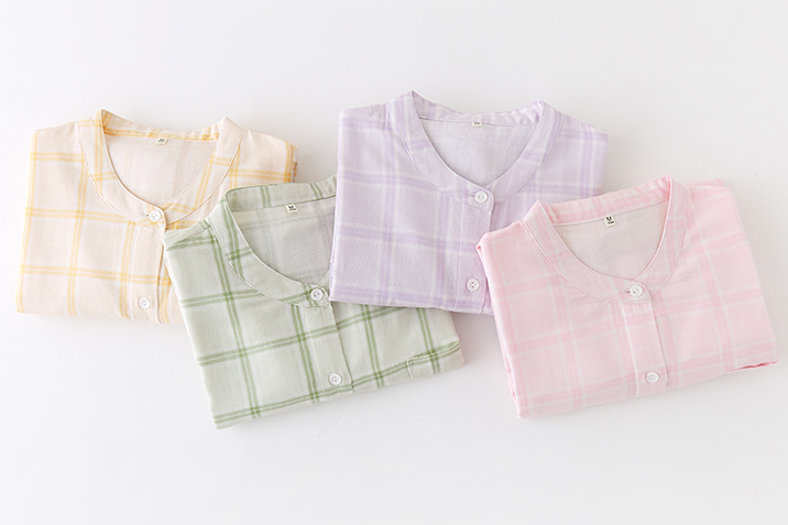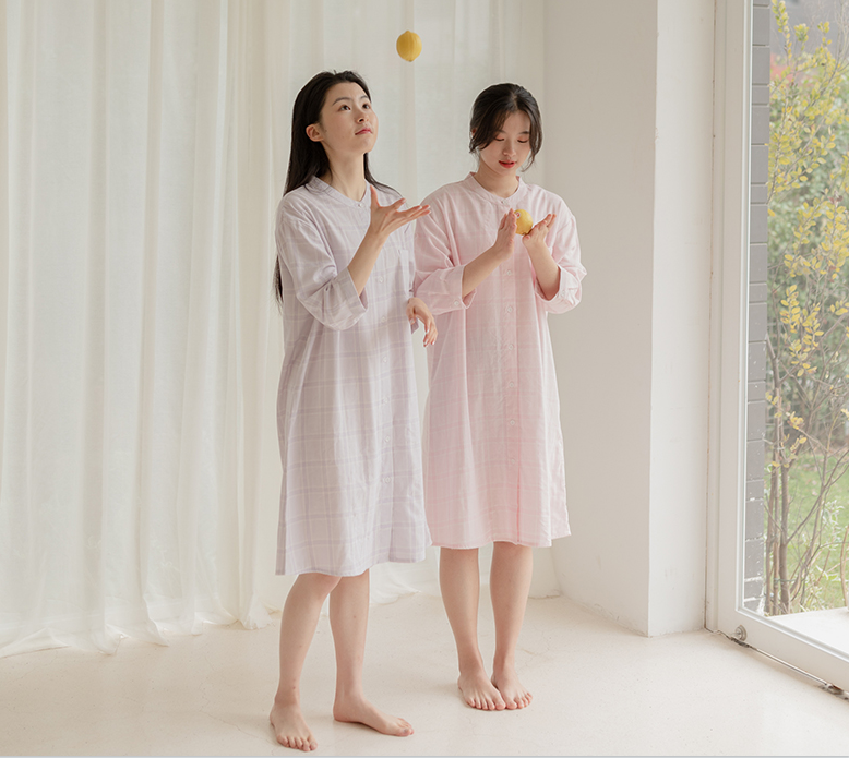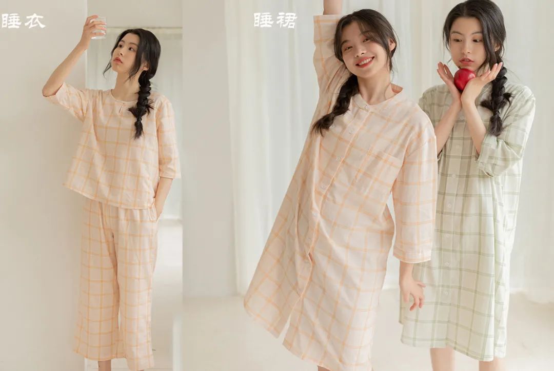 这款睡衣精选优质双层纱织棉料,里外两层,透气性和吸湿性都比一般的单层面料要更优秀。