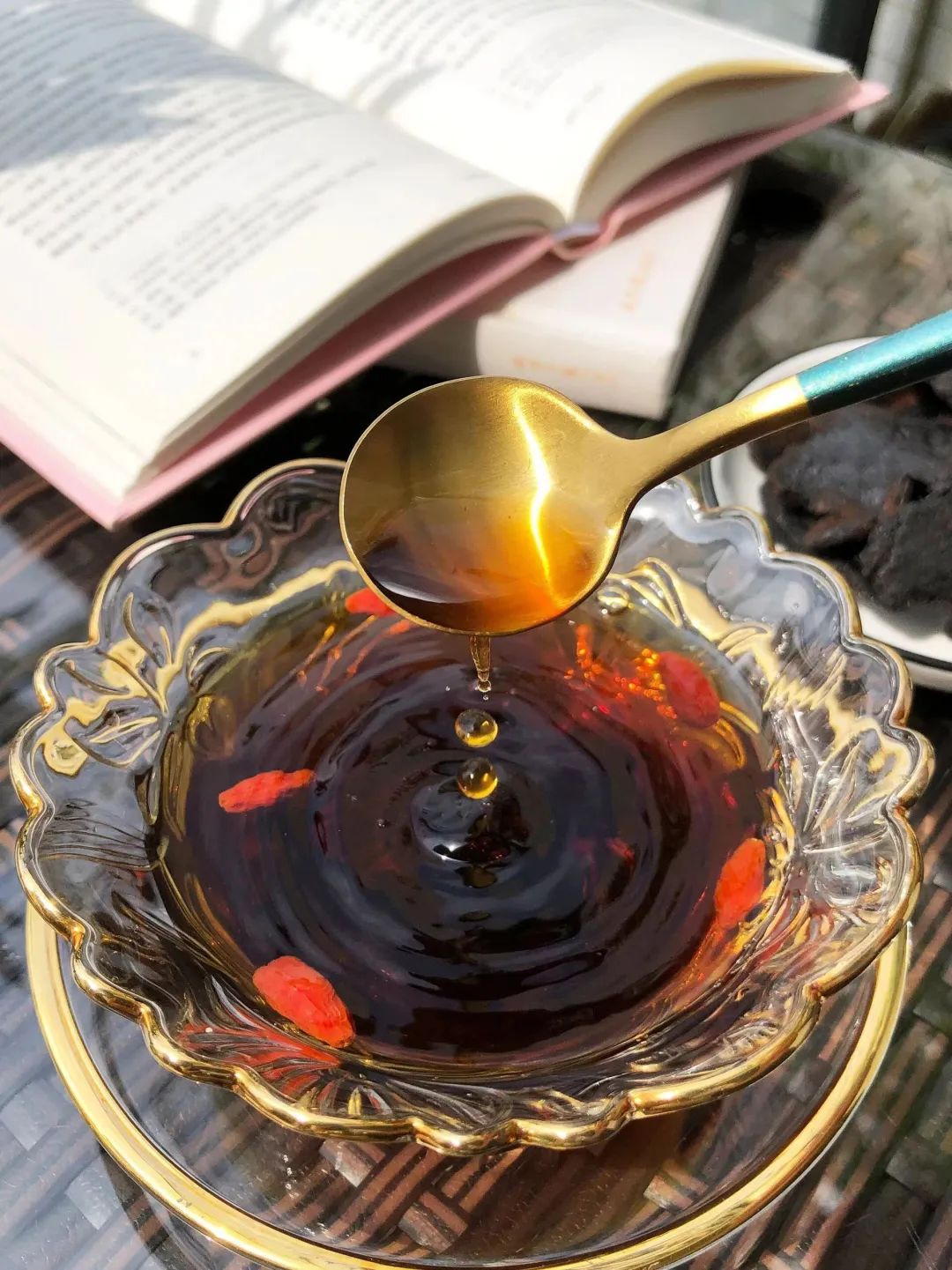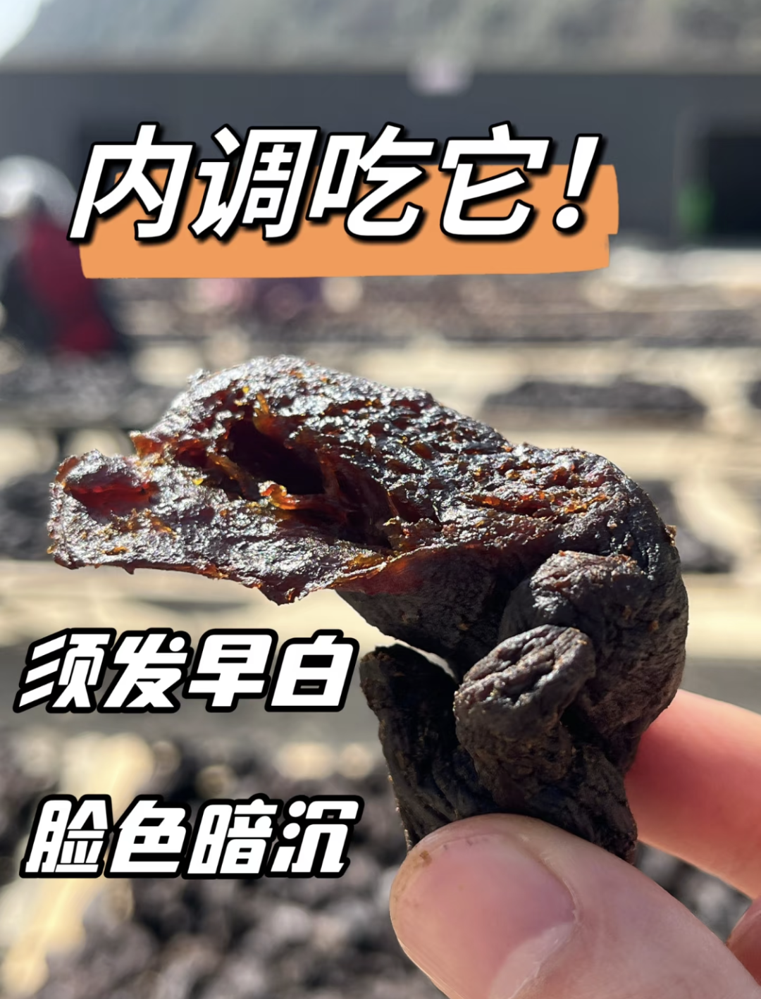 再经过经过九蒸九晒老工艺,其色如深黑,甜香浓郁、肉质细腻、嚼之无渣。