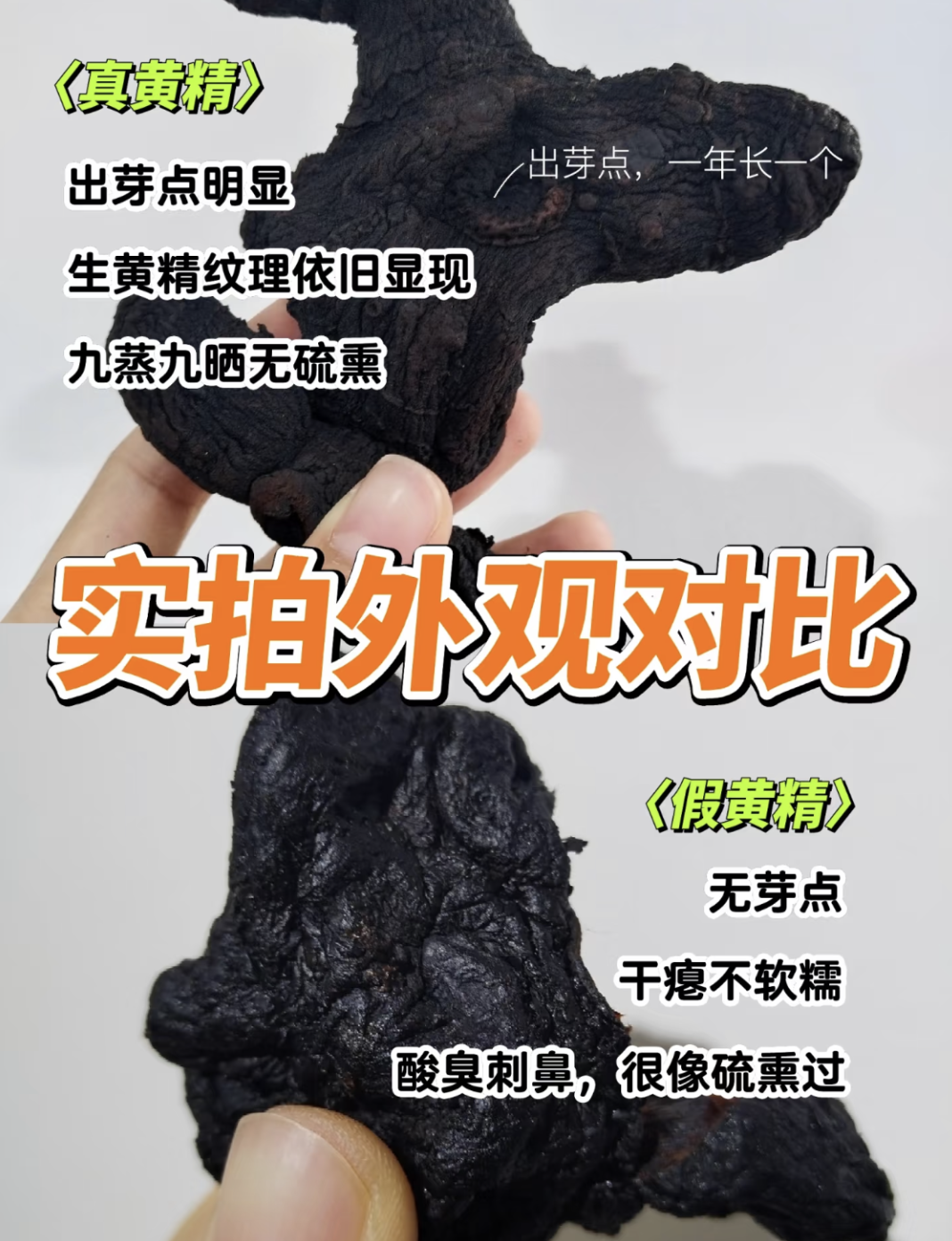 不过市面上的黄精真假难辨,可能存在一些不良商家用熟地黄代替九蒸九晒黄精,这样效果可能就会大打折扣