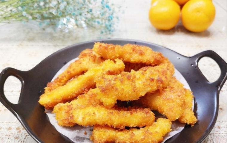 5.锅子里油热以后,一条条加入鱼块,炸到金光即可。
