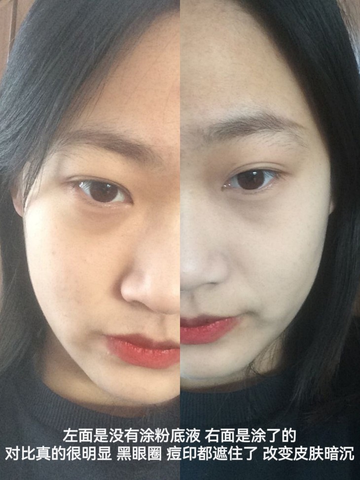 之前一直买的比较多的是美康家的散粉、唇釉和护肤品,粉底是第一次用。到手以后得感觉就是瓶子很好看(如果盖子能做的更有质感就好啦哈哈),特意试用了几天才来反馈的。我的肤质是夏混干,冬天大干皮,敏感肌红血丝比较严重,有轻微的痘痘痘印,肤色比较白,平时用粉底都是一白的色号。这款粉底整体使用下来是有被惊喜到的,首先遮瑕能力是不错的,图片分别是铺了一层和三层粉底的区别,多次叠加是可以实现遮盖大部分瑕疵的,但是我个人使用下来不建议叠加的很厚,因为这是一款持妆型的粉底液,多次叠加容易显得厚重。粉底质地不错,很容易推开,我用的是旖粉01号色,这个颜色很白,不是特别特别白的妹子真的不要选这个色号,我平时都用一白的都感觉有点hold不住,不过还好颜色是那种通透的白,不是死白死白的,只要调整好脸和脖子的色差,也不会显得很假面。持妆能力是我最惊喜的地方,我连续几天早上七点半上妆持续到晚上十点,带妆十几个小时的情况下也没有出现暗沉和脱妆,除了擦鼻涕擦掉的地方,整体妆面还是比较完整的。经过这几天的使用,我个人感觉这款粉底液更适合油皮和混油皮,干皮混干妹子冬天用的话一定要做好妆前保湿工作,或者在夏天使用。总的来说这是一款值得入手的粉底,尤其价位也很赞,性价比真的很高了。