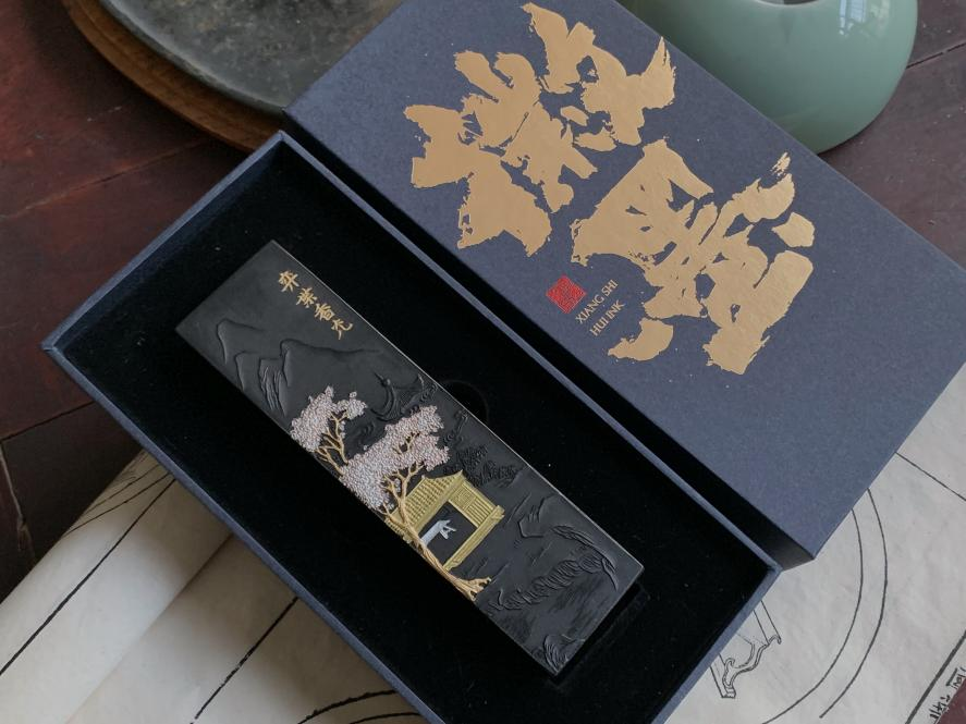 说起徽墨的优点,曾有评价说“拈来轻、磨来清、嗅来馨、坚如玉、研无声、一点如漆、万载存真”。