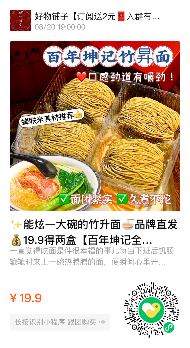 品牌直发💰19.9得两盒【百年坤记全蛋竹昇面】