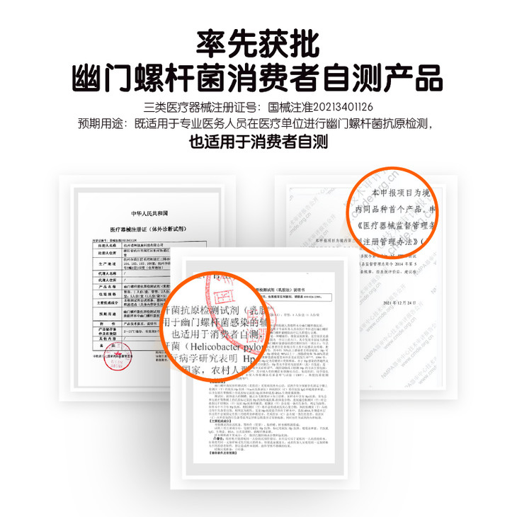 “幽幽管”采用双抗体夹心法,检测粪便样本中是否存在幽门螺杆菌抗原,是国家药监局批准的中国首个适用于“消费者自测”的幽门螺杆菌检测产品。