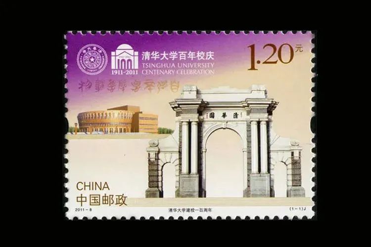 《清华大学建校一百周年》纪念邮票,一套一枚,面值120分。