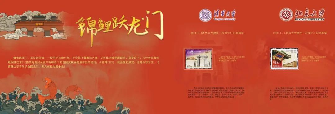 它的邮票背景图案选用了红色,庆祝意味十足,特别适合送给广大中、高考的学子们,寓意他们能够金榜题名,考上理想大学。