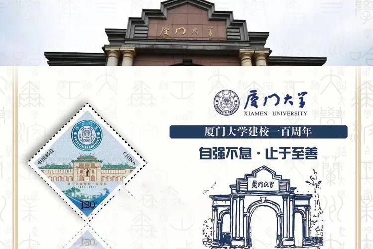 在22枚邮票中,最新发行的就是厦门大学的邮票了,2021年4月6日厦门大学百年校庆当天发行。