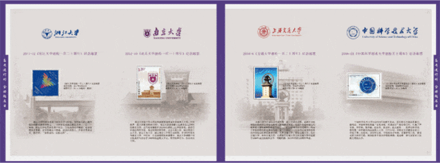 清华、北大、厦大、浙大、复旦等名校珍贵邮票封装在精致的内页中,附带学校简介,非常精美。