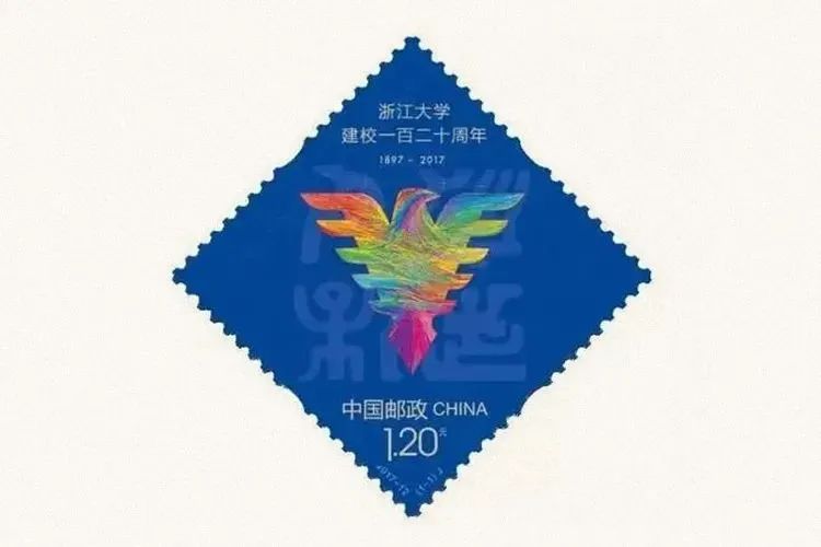 邮票的主色调采用了温暖而深沉的浙大蓝,体现出了百年浙大“大不自多、海纳江河”的气度与魄力。