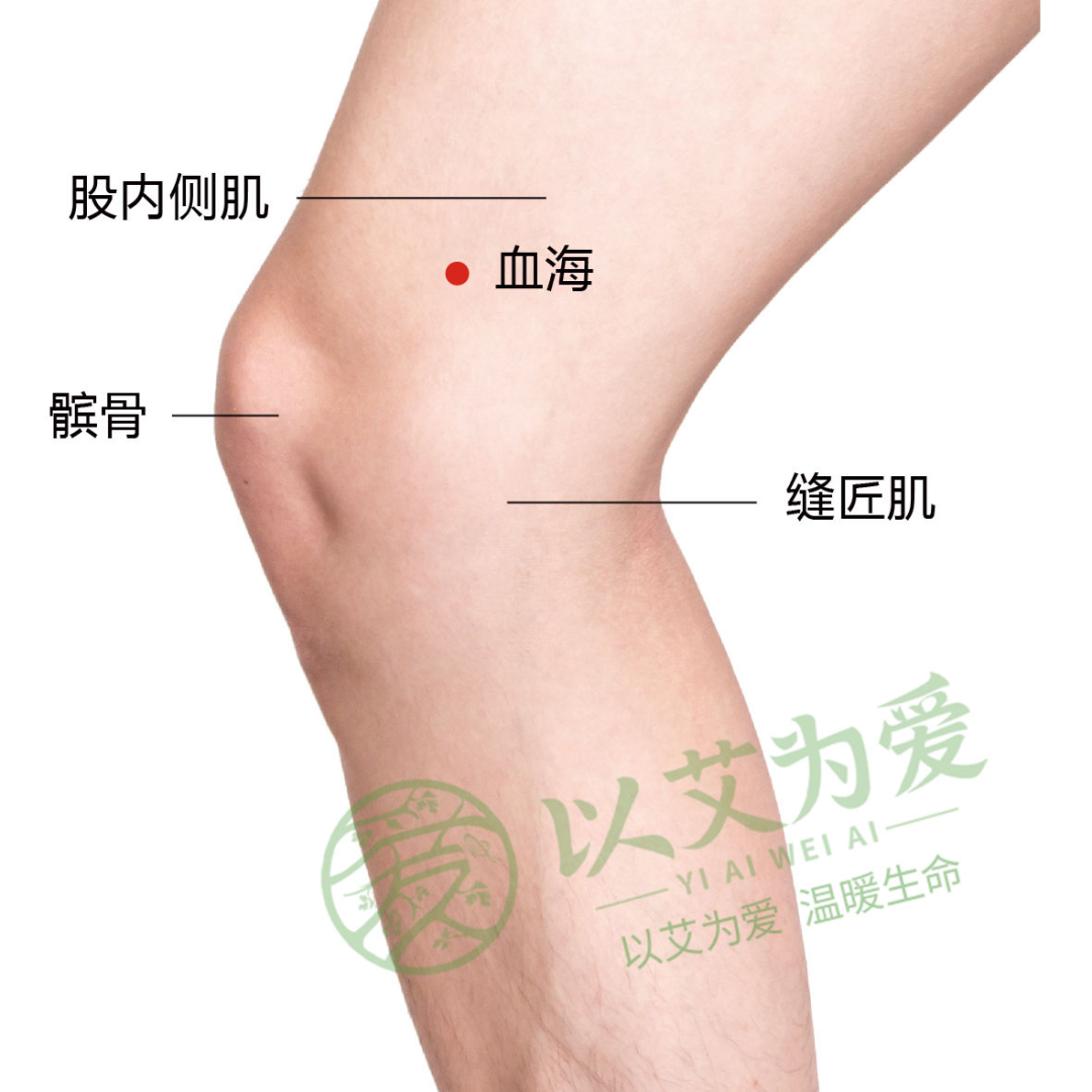 血海为足太阴脾经之腧穴,善化血为气,运化脾血,濡养肌肤。