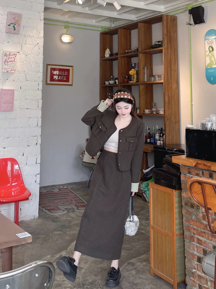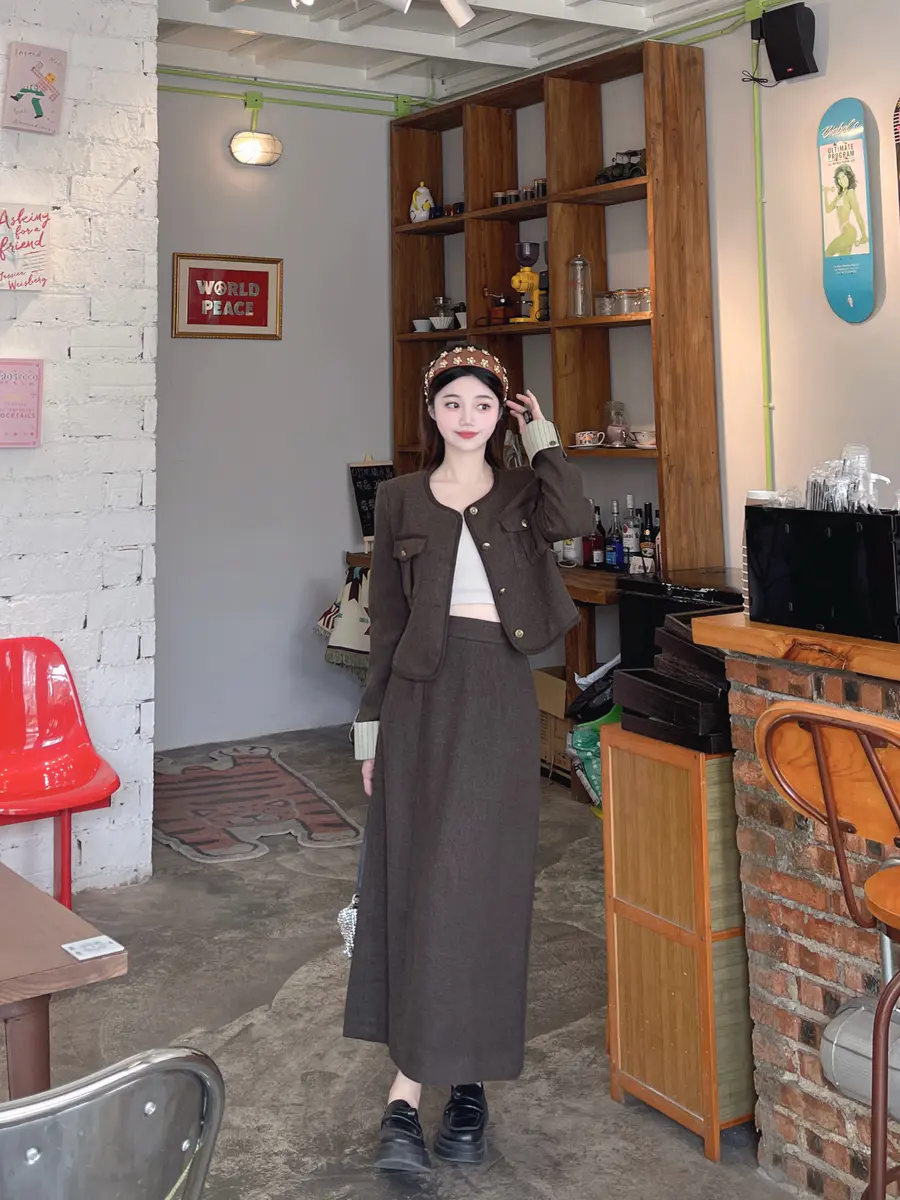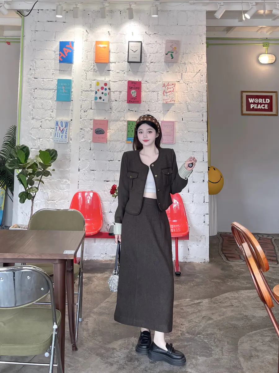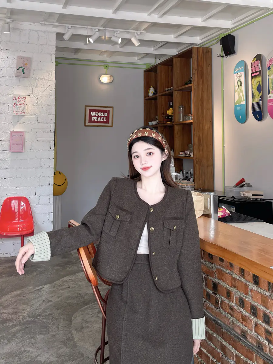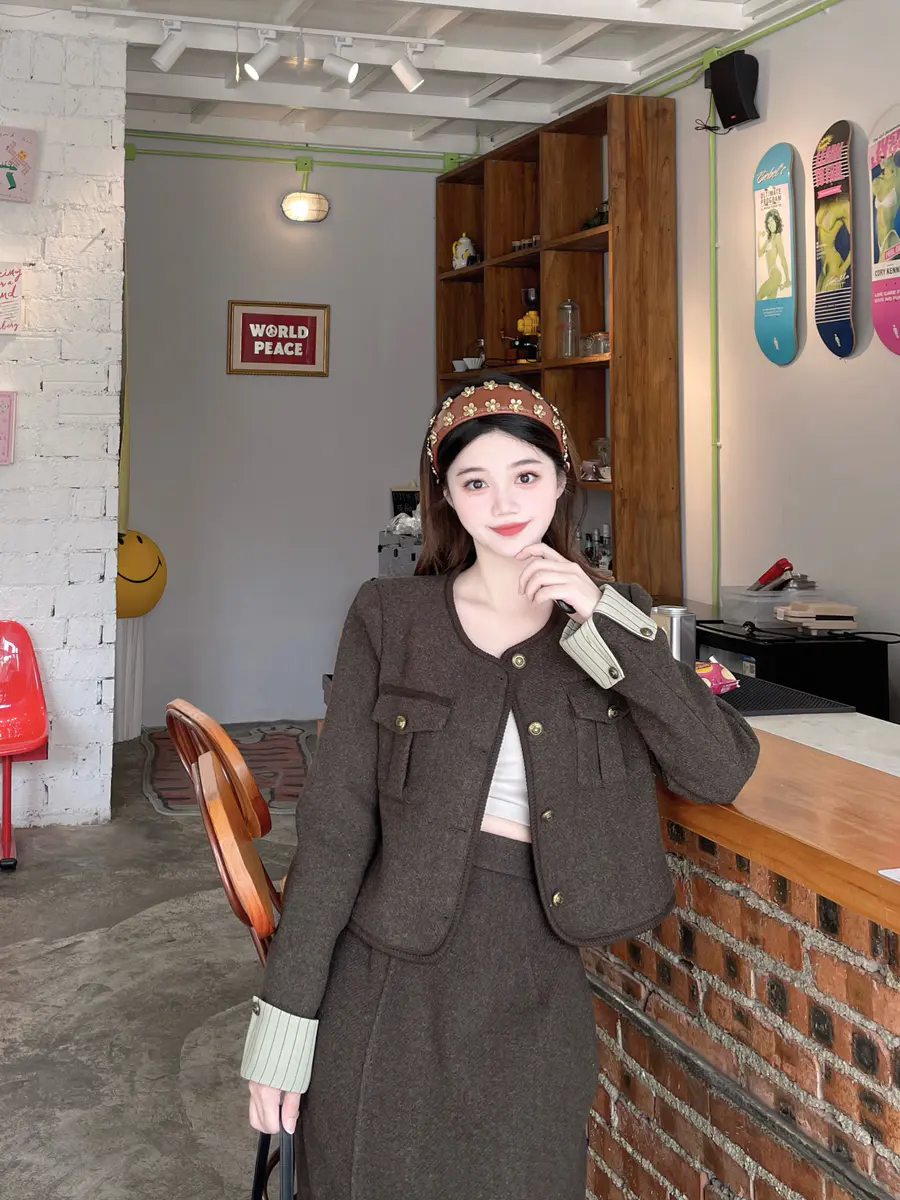 秋冬和小香风的适配度不用多说啦!!一整套省了搭配的时间,复古的配色~越简单越精致