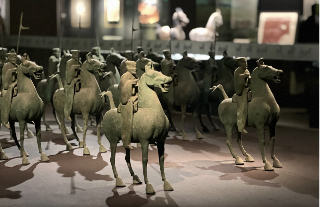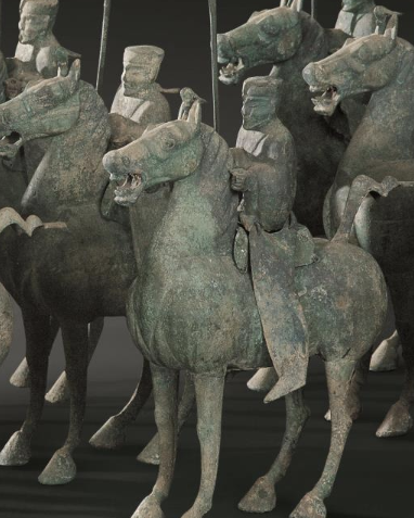 1969年,甘肃省武威市的雷台墓出土了99件铸造精美的铜车马仪仗俑,气势宏大,铸造精湛,可称之为中国出土数量最多、样式最为齐全和盛大的铜车马仪仗俑。这组铜车马仪仗俑,既是中国古代历史上河西走廊名马的真实写照,也是当时封建王朝统治之下的社会生活的真实见证。