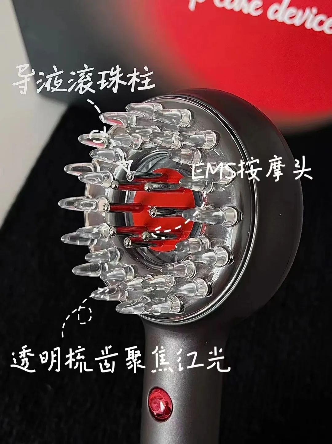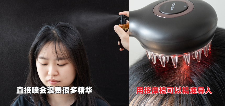 只要把精华/精油喷到里面,梳头时精华就能通过梳齿的滚珠抹到头皮上了。以前用头皮精华,经常会滴落到额头、脖子、衣领,浪费又难收拾,还有可能导致其它地方长绒毛。