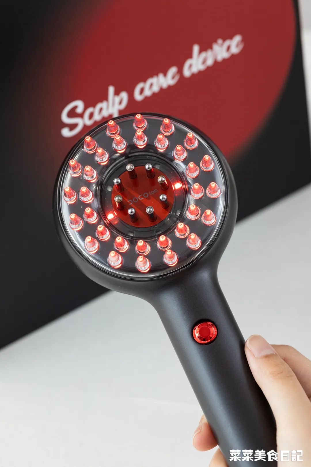 DOCO按摩仪就很聪明,它用的是可以透光的透明梳齿。梳齿拨开头发,发出的红光能通过梳齿直达头皮,全部都聚集到头皮上了。虽然灯珠数量没有红光帽多,但每束红光都发挥到刀刃上了,这钱才花得实在嘛。630nm红光(原有可见光)+850nm红外光(新增不可见光),双波段协同作用,效果会更好。