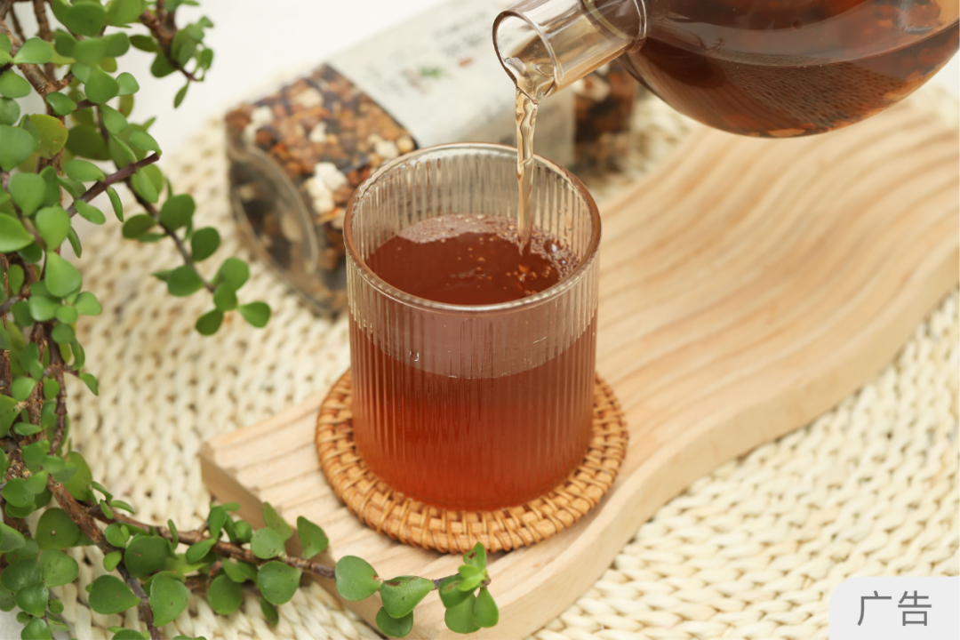 经过多次配方的调整,现在这款芡实薏仁茯湿茶不同于传统的苦涩口感,而是带有淡淡的焦香味,好闻好喝。
