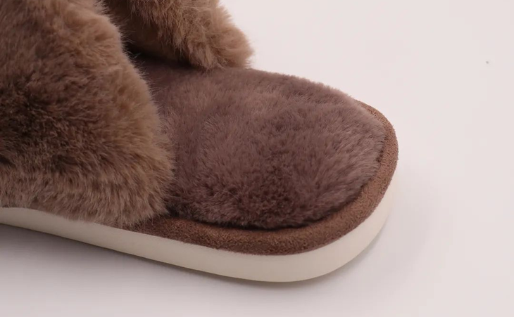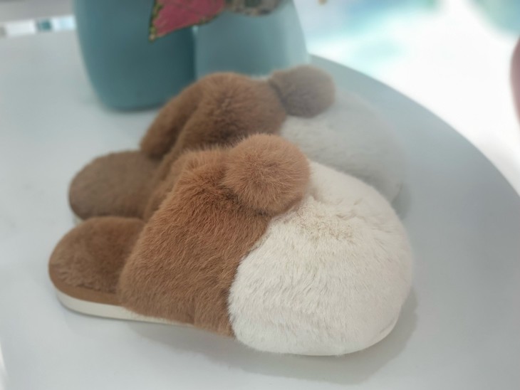 主要材质选用珊瑚绒,鞋面绒毛做出了市面上少有的仿兔毛手感,显得蓬松细腻,摸起来就像在摸狗狗一样软萌。EVA鞋底很轻便,不会有一般棉拖鞋会有的笨重感。