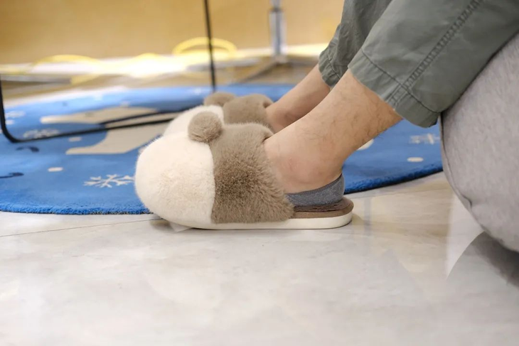 鞋面比一般的半包拖鞋暖和,又比全包拖鞋透气,穿脱更方便。上脚体验后,足部的四分之三都能被暖绒包裹,脚掌不易滑出,走路不费劲。