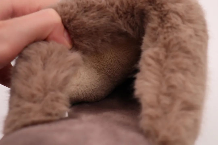 表面是仿兔毛的手感,摸起来蓬松饱满~