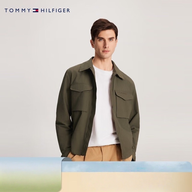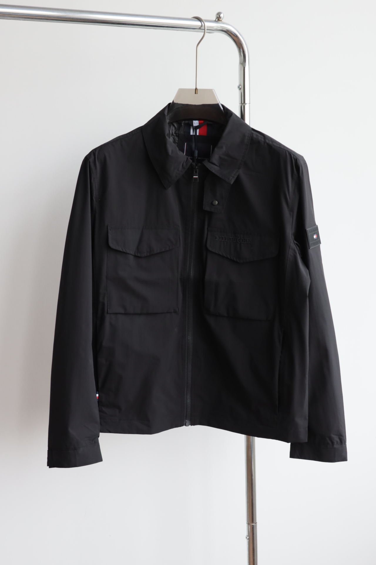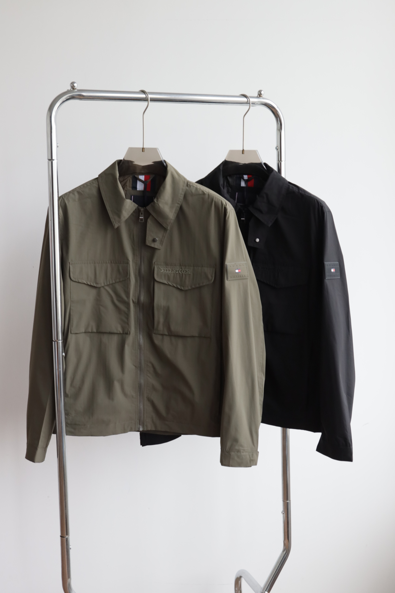 正面双口袋装饰,拉链门襟,经典翻领造型