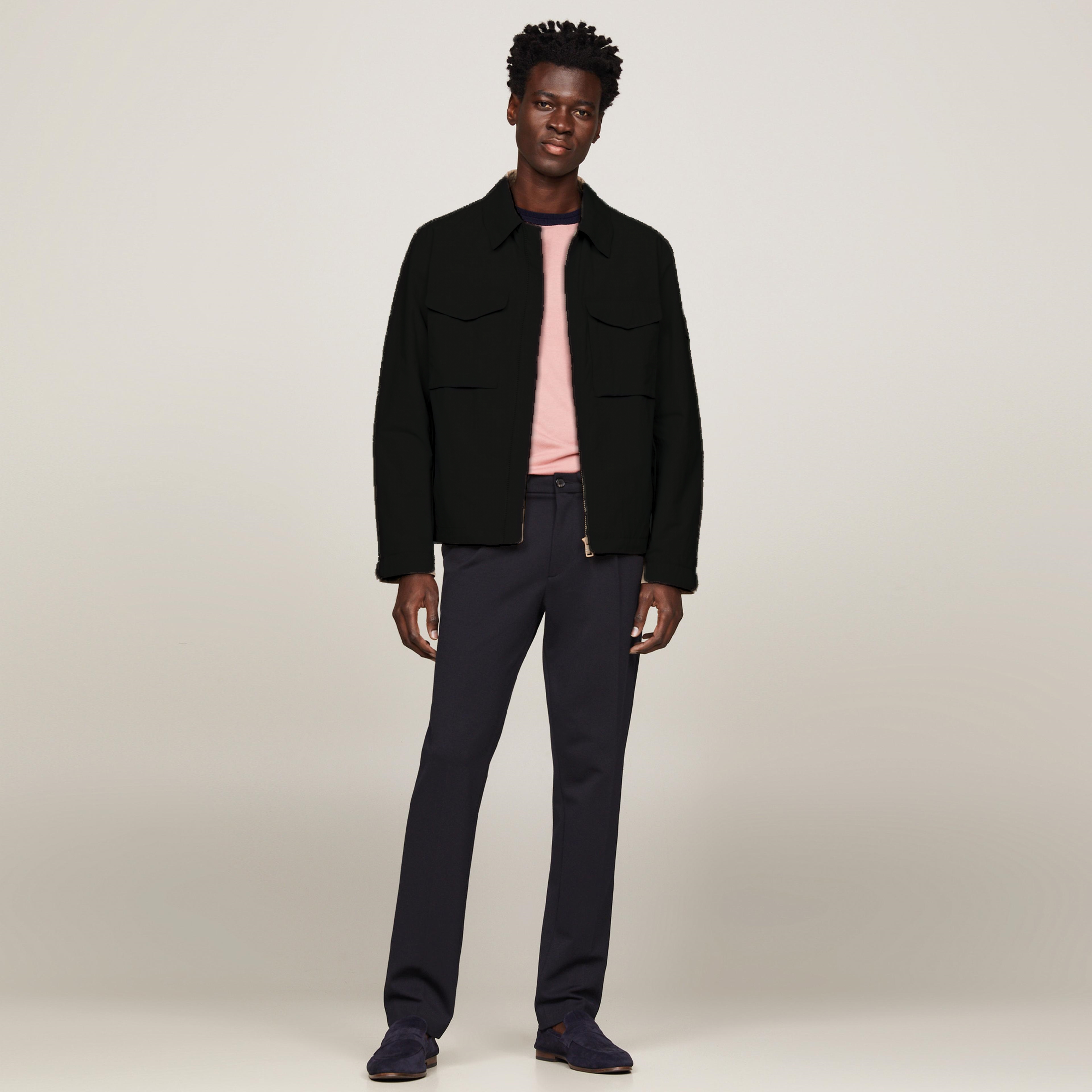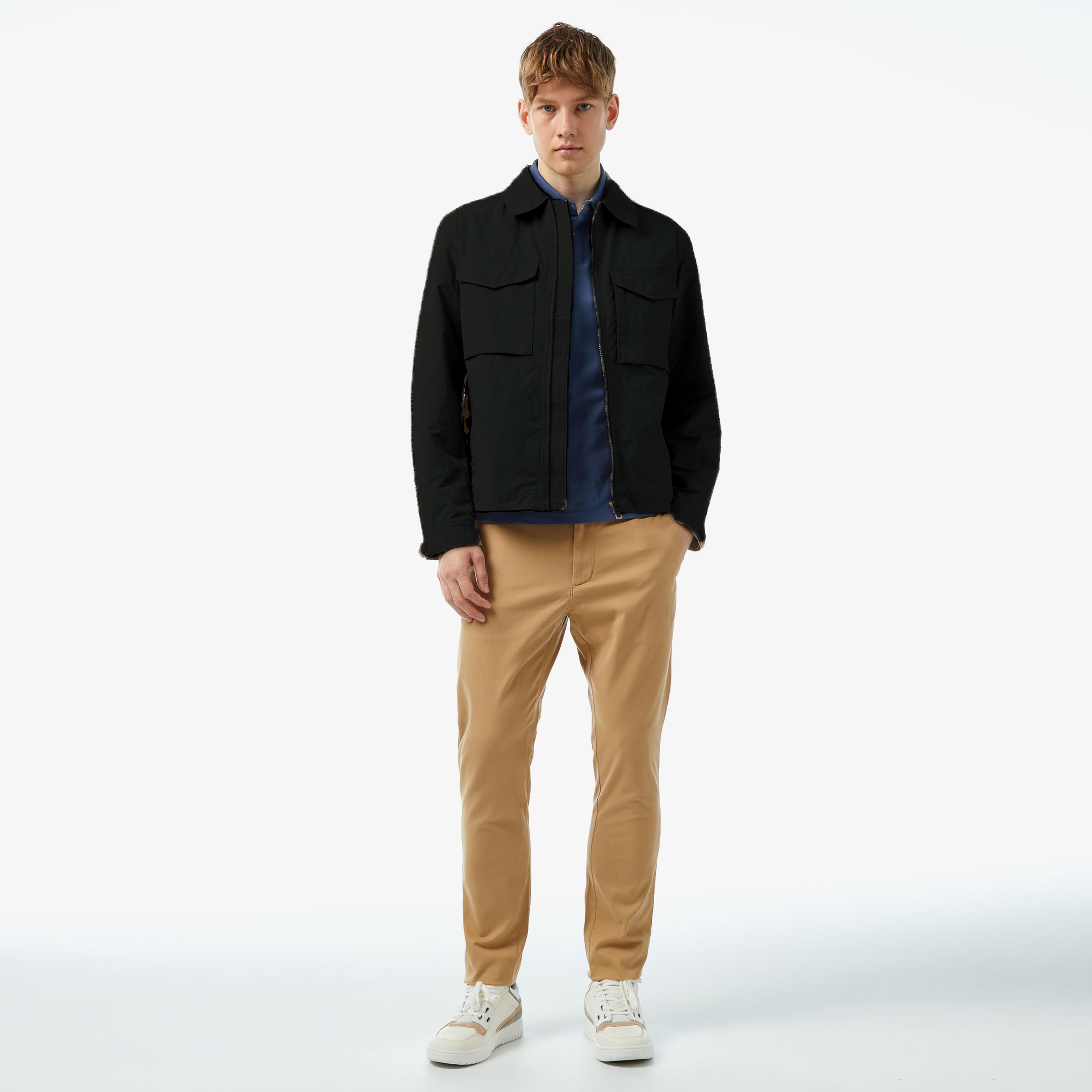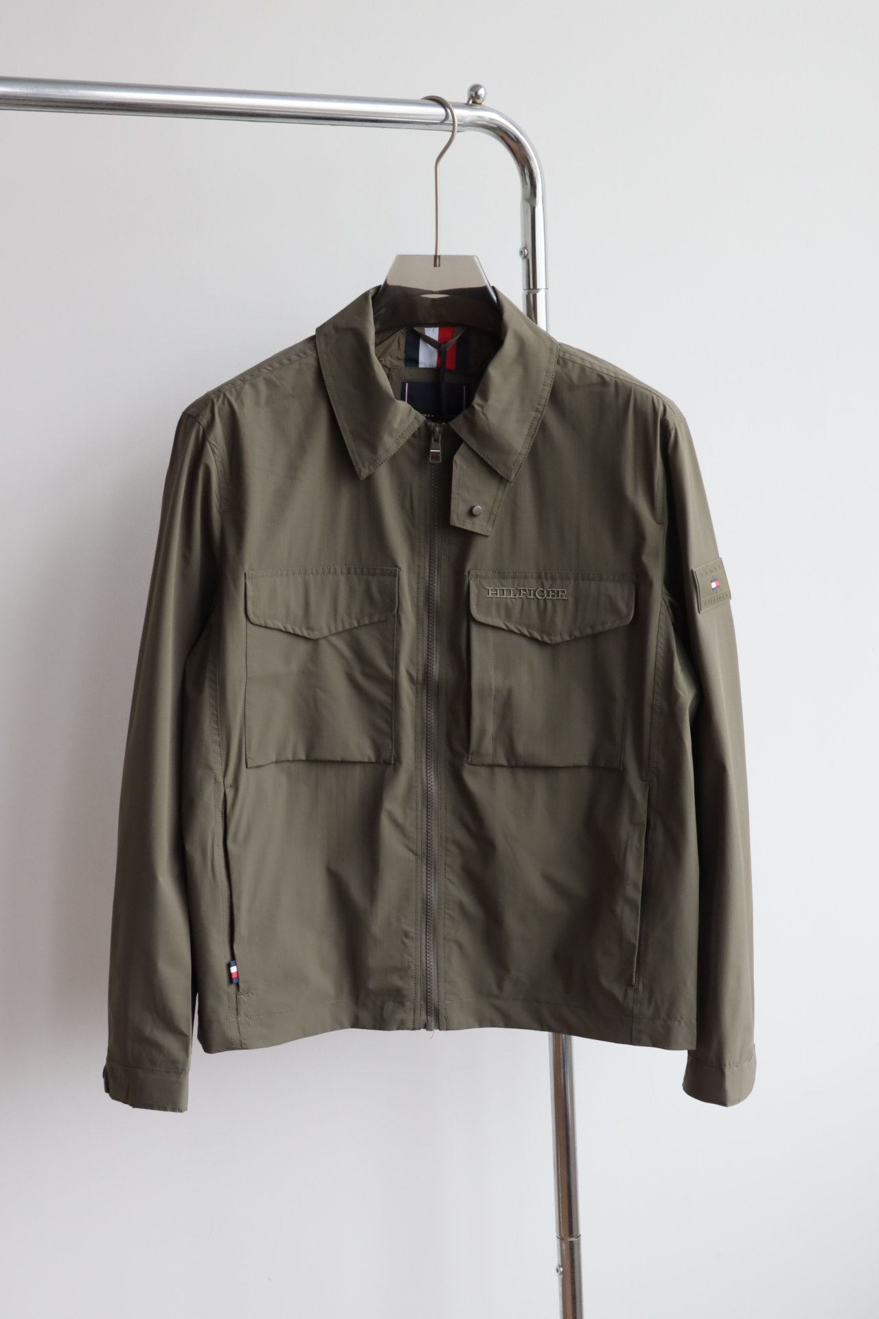 正面双口袋装饰,拉链门襟,经典翻领造型