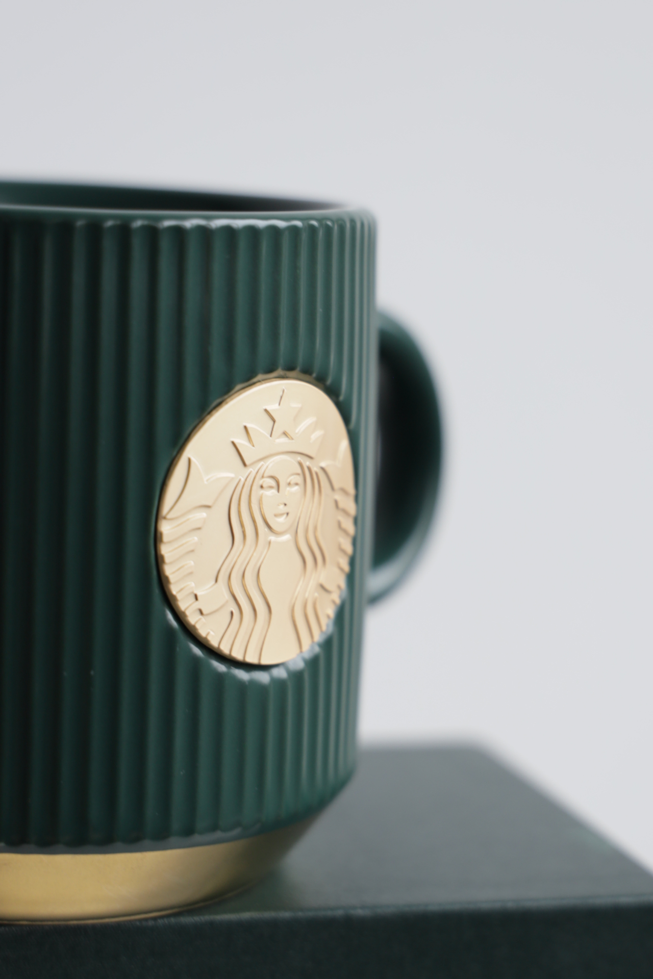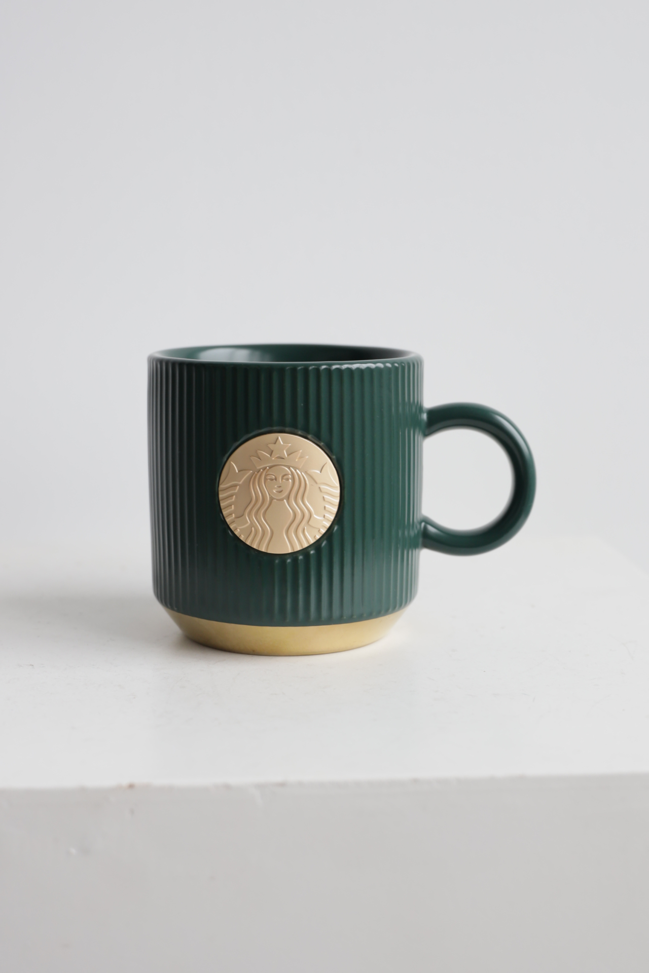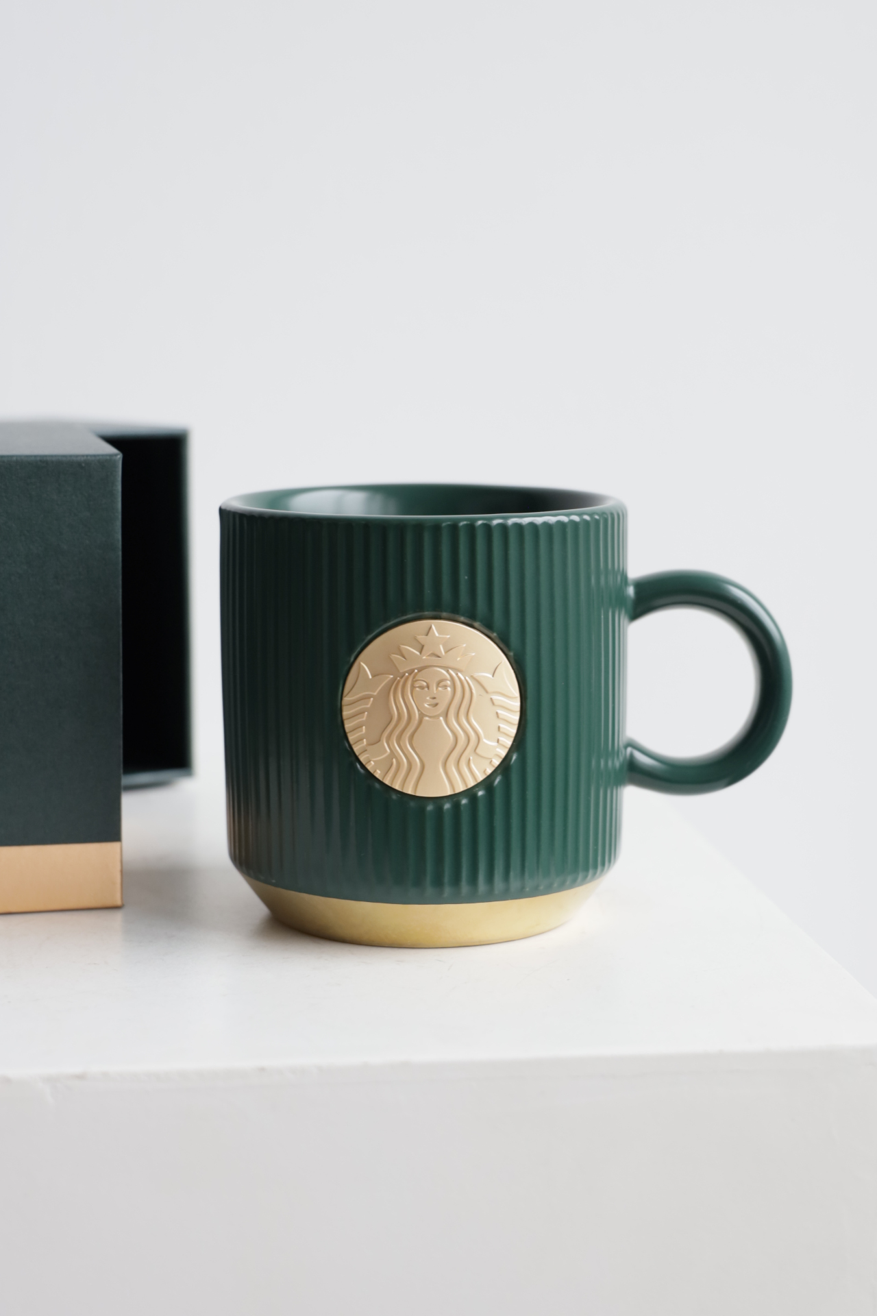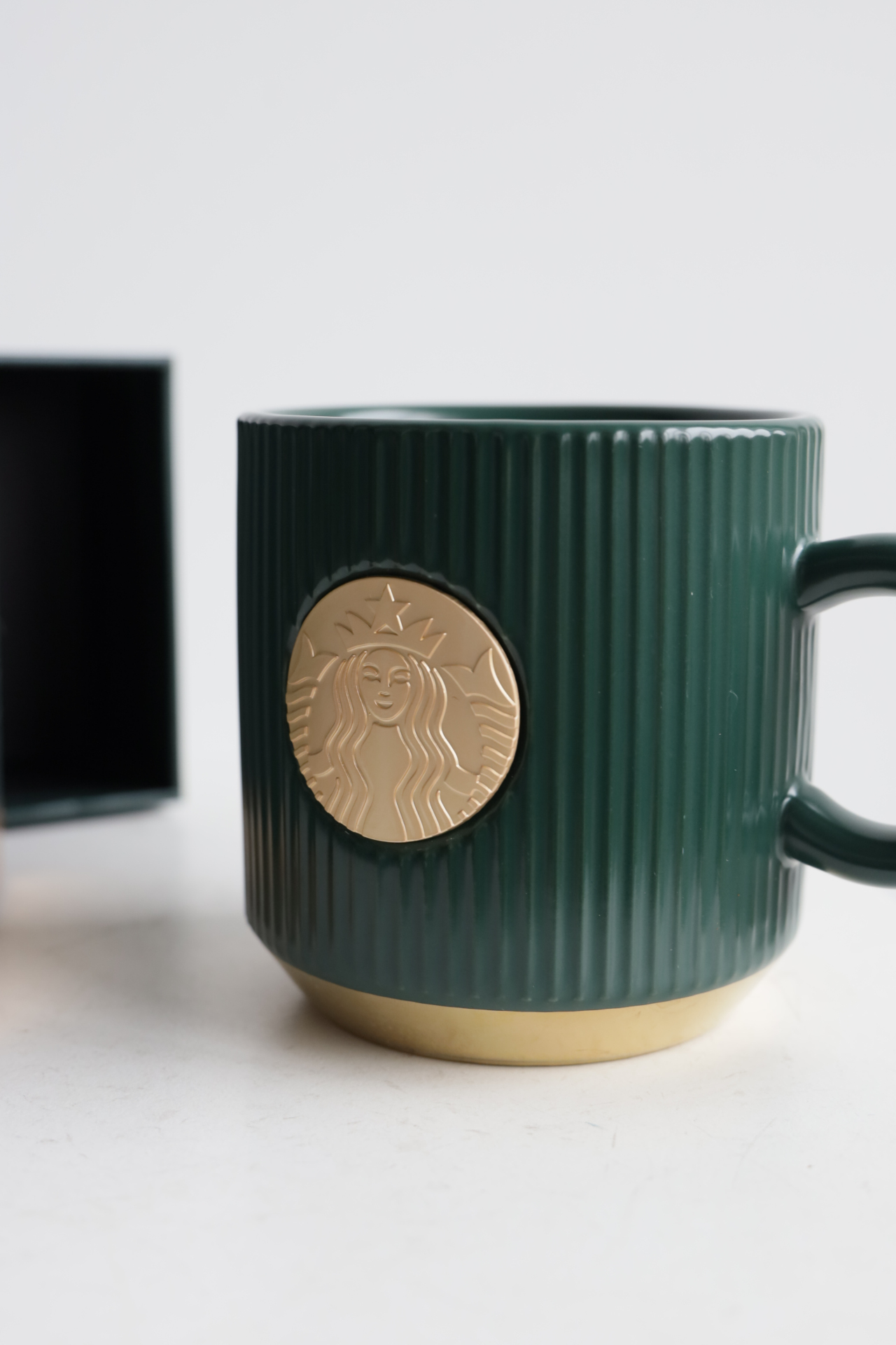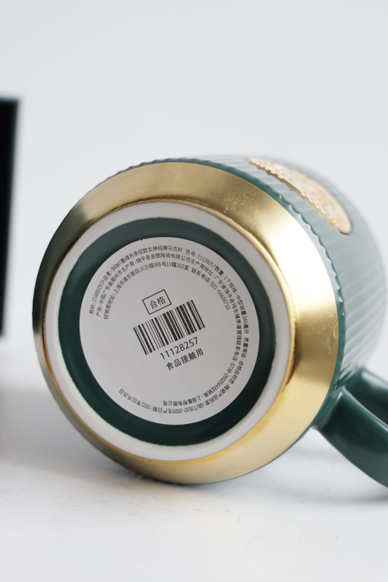 女神铭牌简约条纹陶瓷带手柄咖啡杯马克杯(340ml)