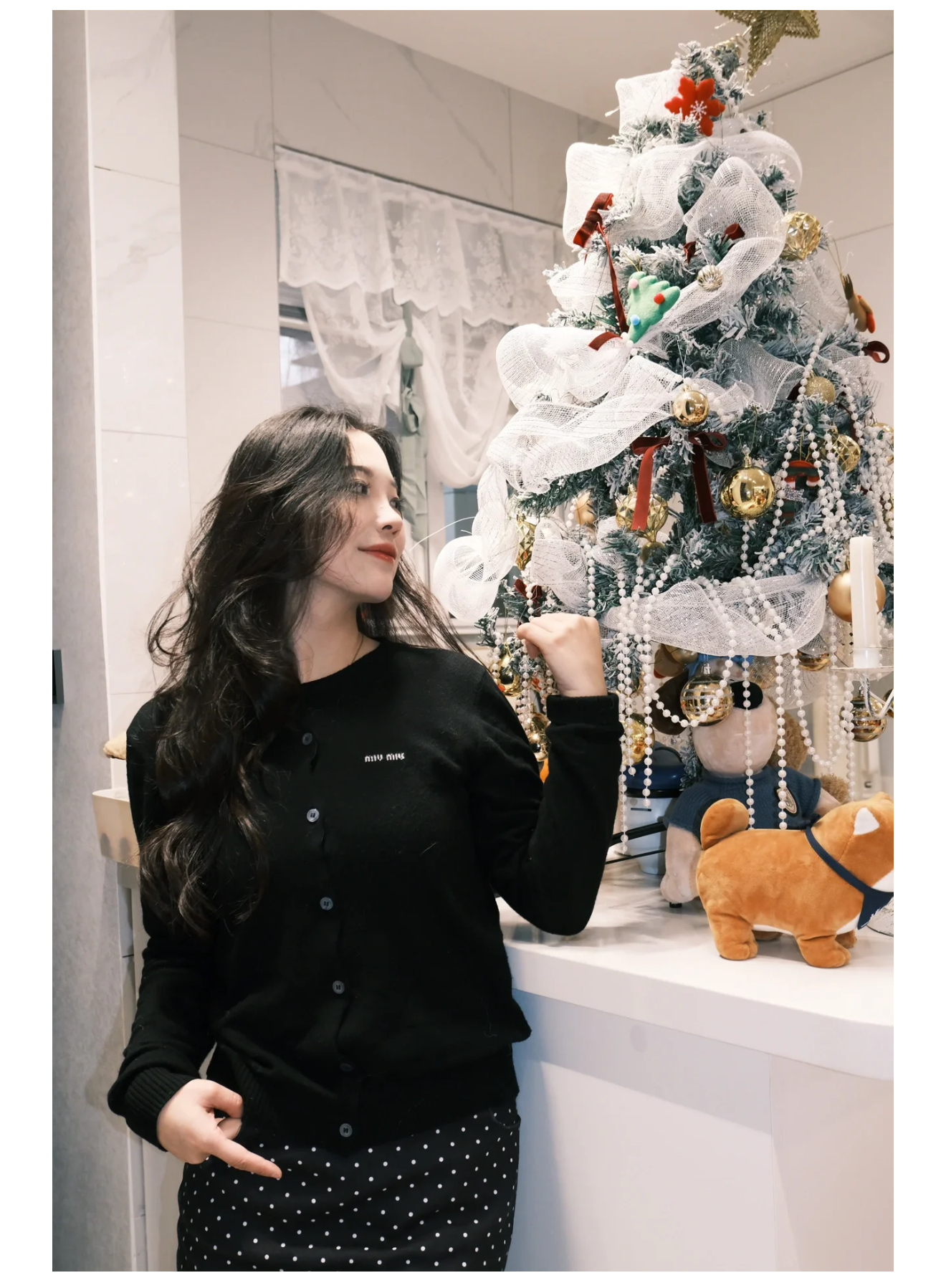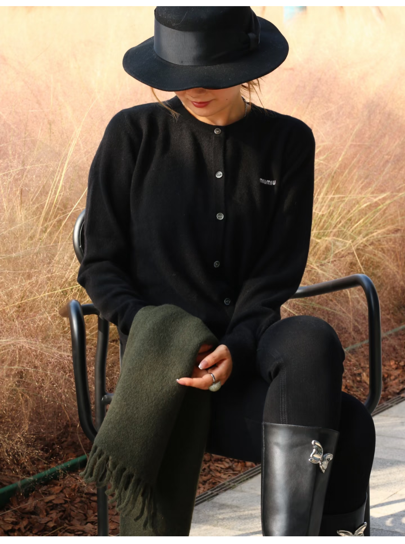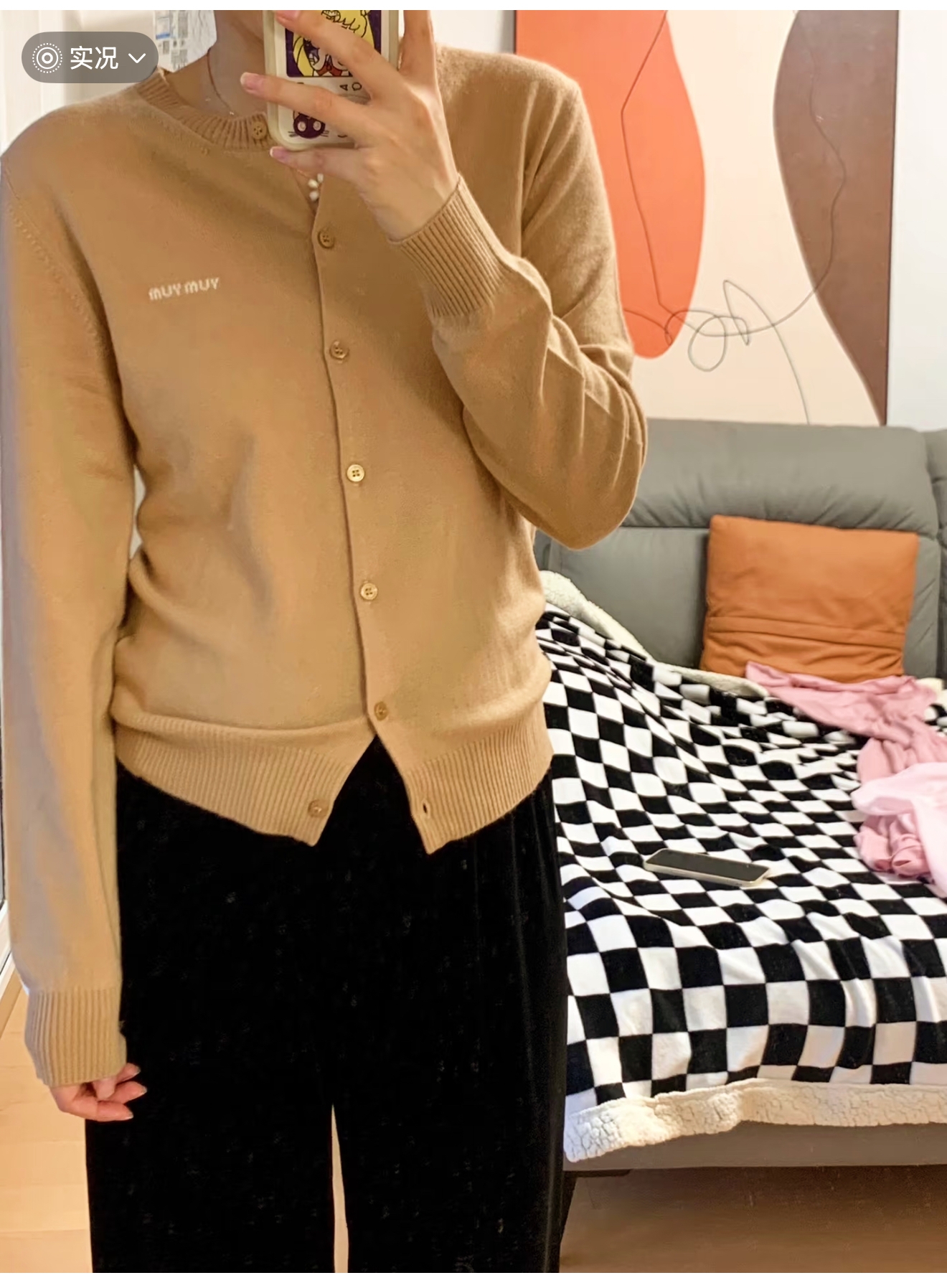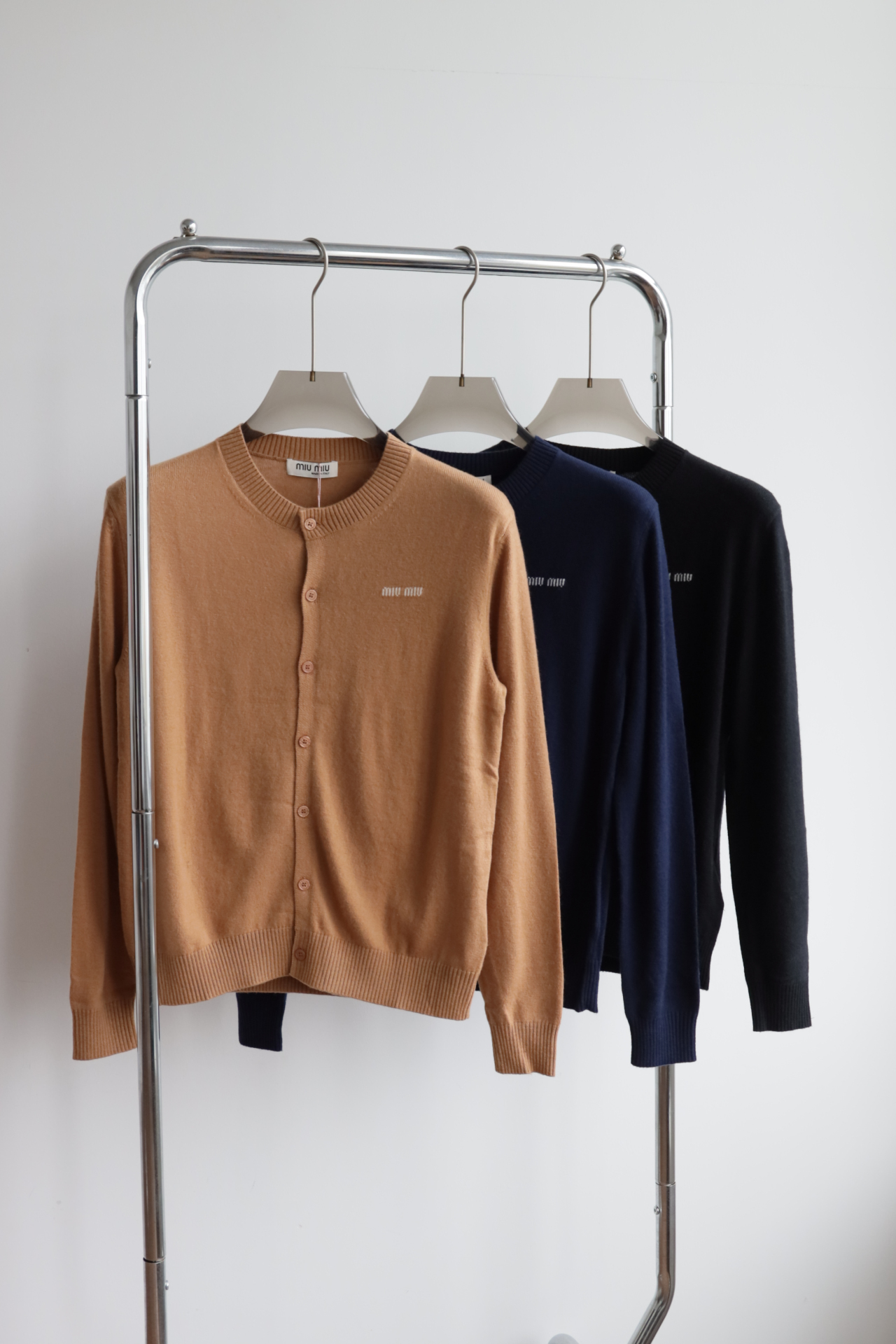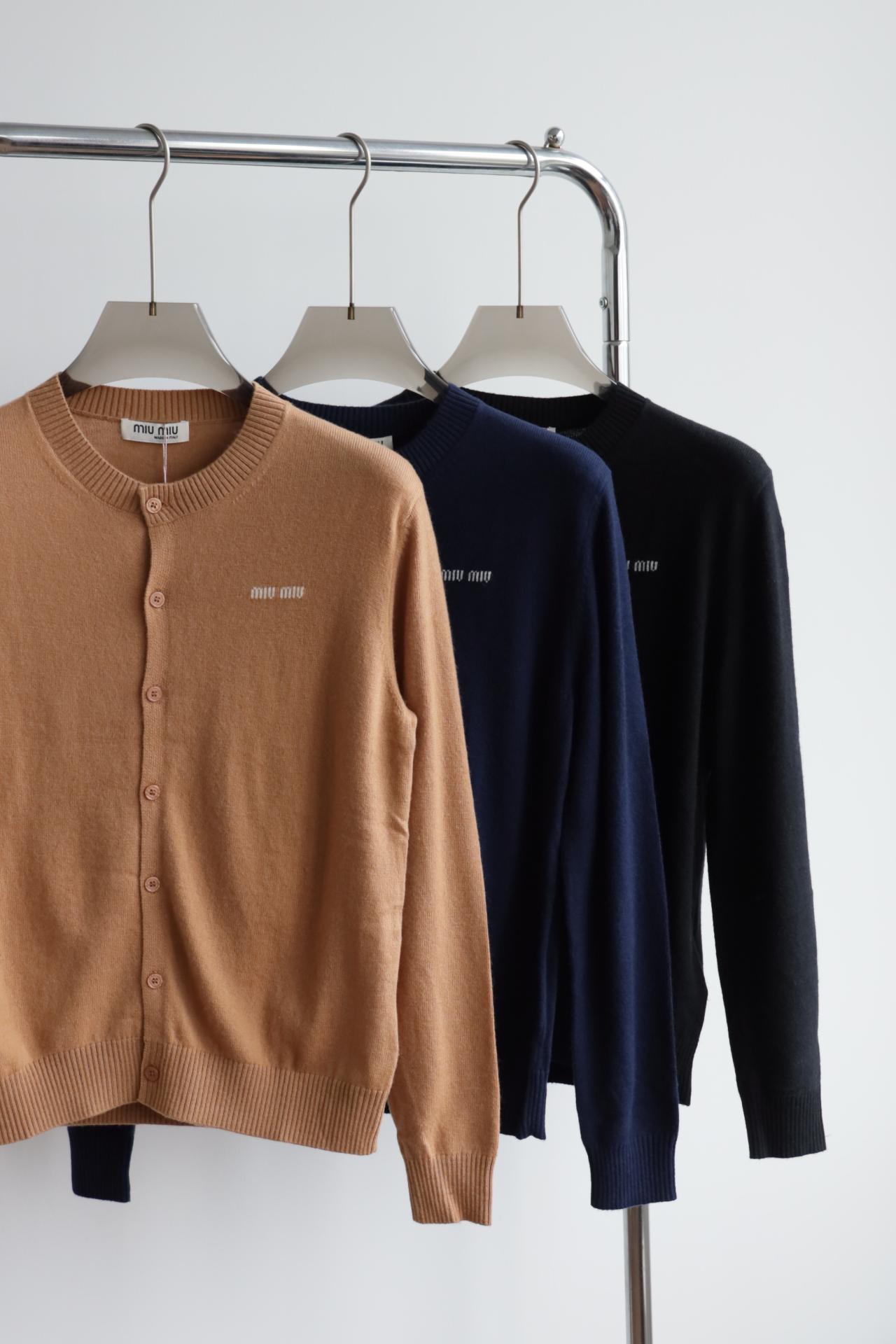 女款M1U M1U 100羊毛纯色字母徽标休闲长袖针织衫