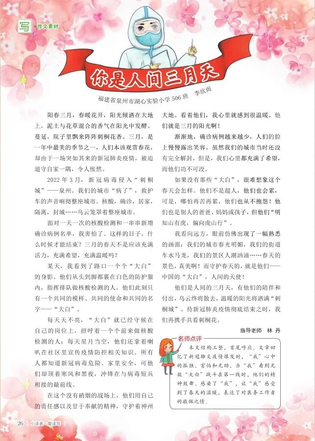 “作文技法”栏目,老师对每篇作文的字、词、句、段、篇和语言、布局点评,让小读者明白好作文好到什么地方。