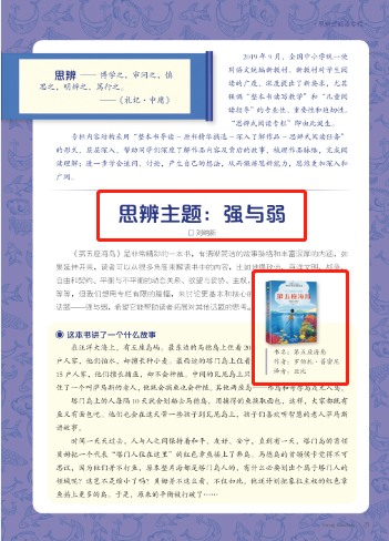 《小读者》是目前全国的小学生报刊少有的把思辨内容融入杂志。文章内容始终关注阅读中的思辨能力培养,并以统编教材要求的整本书阅读内容为重点,每年陪孩子读12本经典童书。