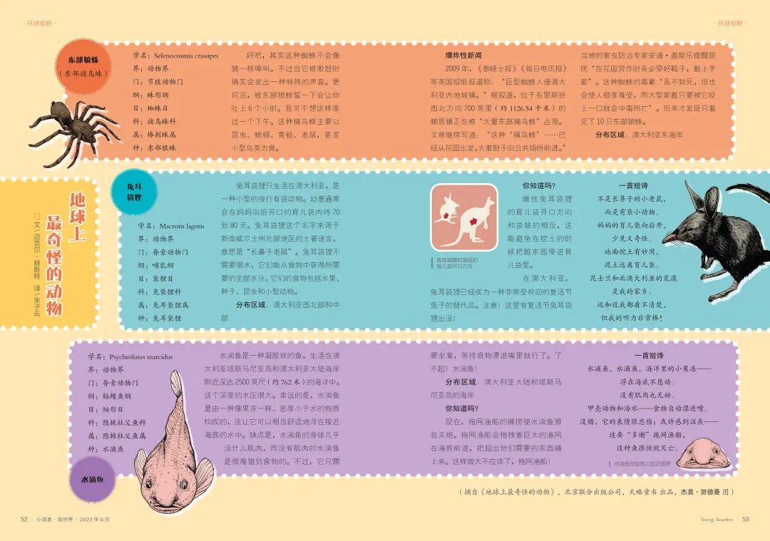《小读者·阅世界》每期精选约50篇精彩文章,题材多样,文体多样,涵盖文学、哲学、历史、自然科学、前沿科技、校园生活、亲子关系等多个板块内容,涉及面很广。