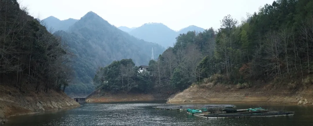 ▲ 上-胥岭全景 中-罗村水库 下-行走在荒野茶园中茶树是当年知青下乡种下的,位于罗村水库旁边的山林里,需要坐船从水库过去。以前的罗村因为修建水库而被淹没,人们进山的路也被阻隔,于是这片茶林平日也并没有人管理修整,抛荒了30余年,成了名副其实的人迹罕至的荒野茶园。水库的水很清,是附近山泉水流下来汇聚而成。那日山里下起了一阵小雨,整个湖面漫布雨点水花。船停在岸边,我们走上小路,跨过腐朽的木搭桥,越过山上的小溪流,穿过阔叶树,竹子,野樱花,松树,苔藓,蕨类,茅草,兰草,各类草本和灌木。