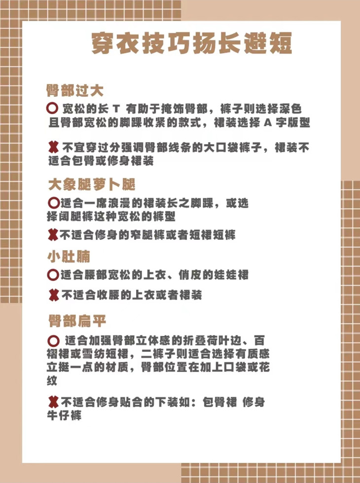 一个人的身材比都是通过视觉传达给人的,外表的衣着就显得尤为重要,好的穿搭能完美的避开缺陷,将自己的优势展现出来。