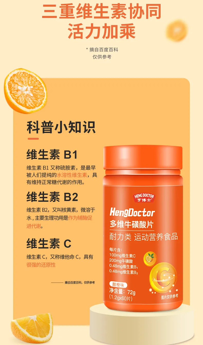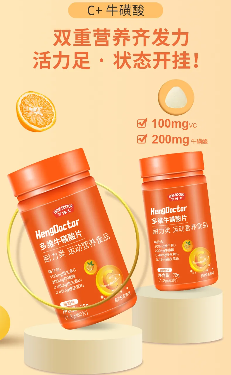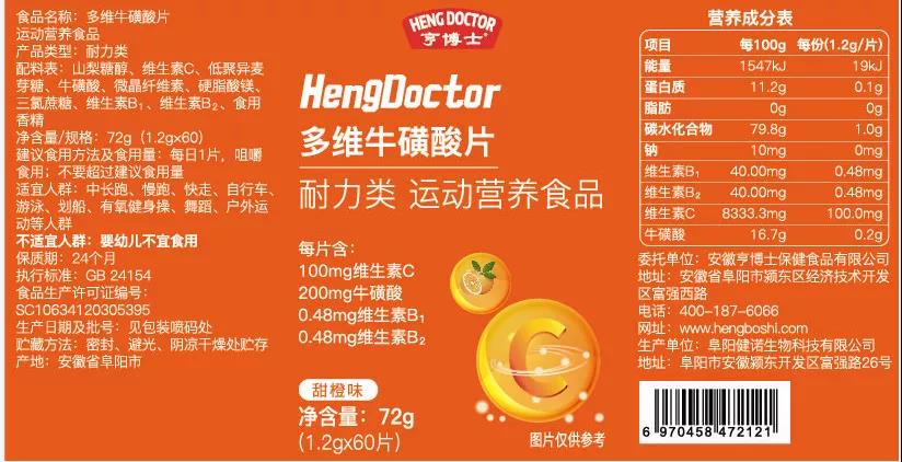 市场上大多数此类产品只有压片糖果的生产资质,所有做出来的产品看似一样,其实生产要求,营养成分,生产工艺完全不一样,而亨博士多维牛磺酸片是真正的耐力类 ,运动营养型食品。