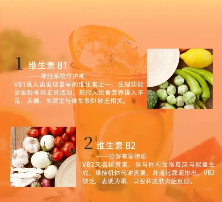 三重维生素协同工作,提高身体代谢,排除体内囤积的废物,身体更轻松~