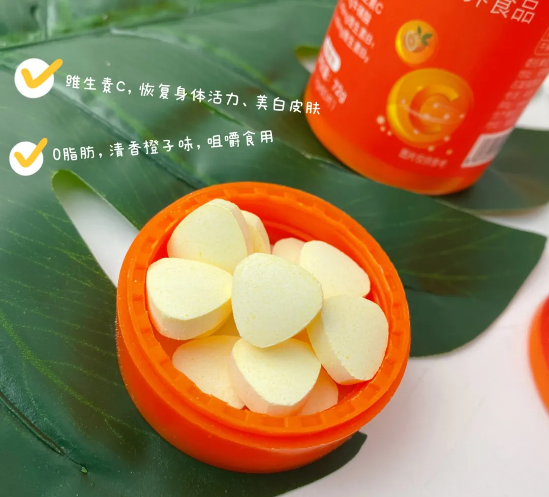 口感像糖果,没有以前吃的维生素那样糊嘴的口感,酸酸甜甜的甜橙口味,含在嘴里完全没有负担。