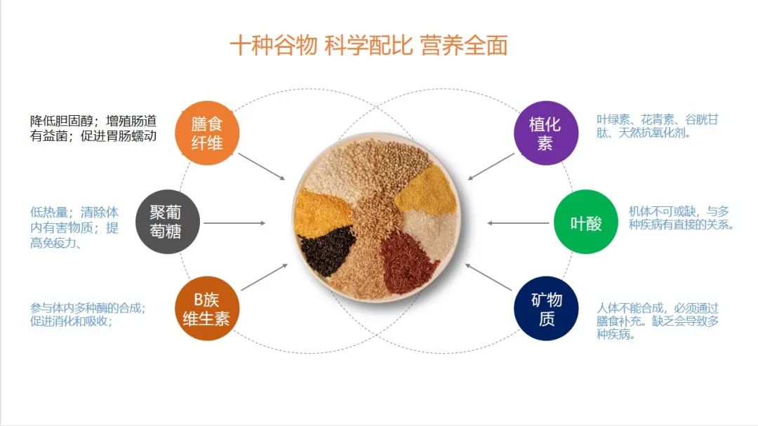 依据五色养五脏的传统中医理论,经专业营养师科学配比,保证人体每日全谷所需。