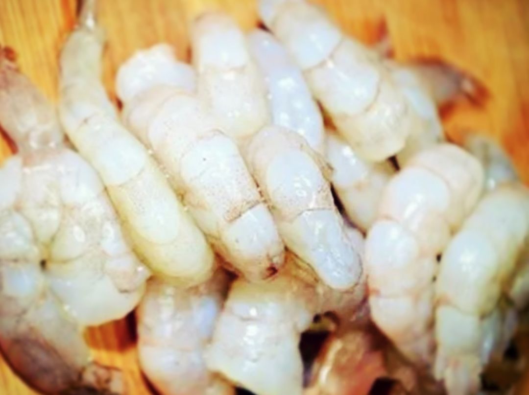 1、将虾剥壳去除虾线,添盐、料酒、白胡椒粉,抓匀待用;