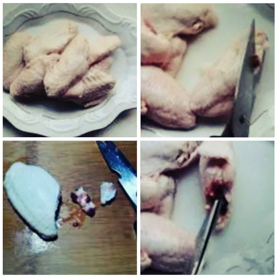 用剪刀把两个连在一起的关节剪断,不要很深的,自己感觉得到,主要鸡翅关节处有链接肉的筋,把它们剪开就可以了,然后有大拇指沿着骨头往下推,这样肉很容易和骨头分离。